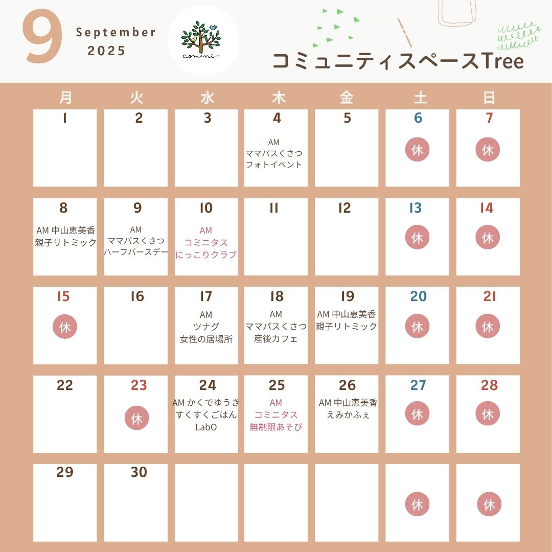 9月のコミュニティスペースTree開催イベントはこちら😊
