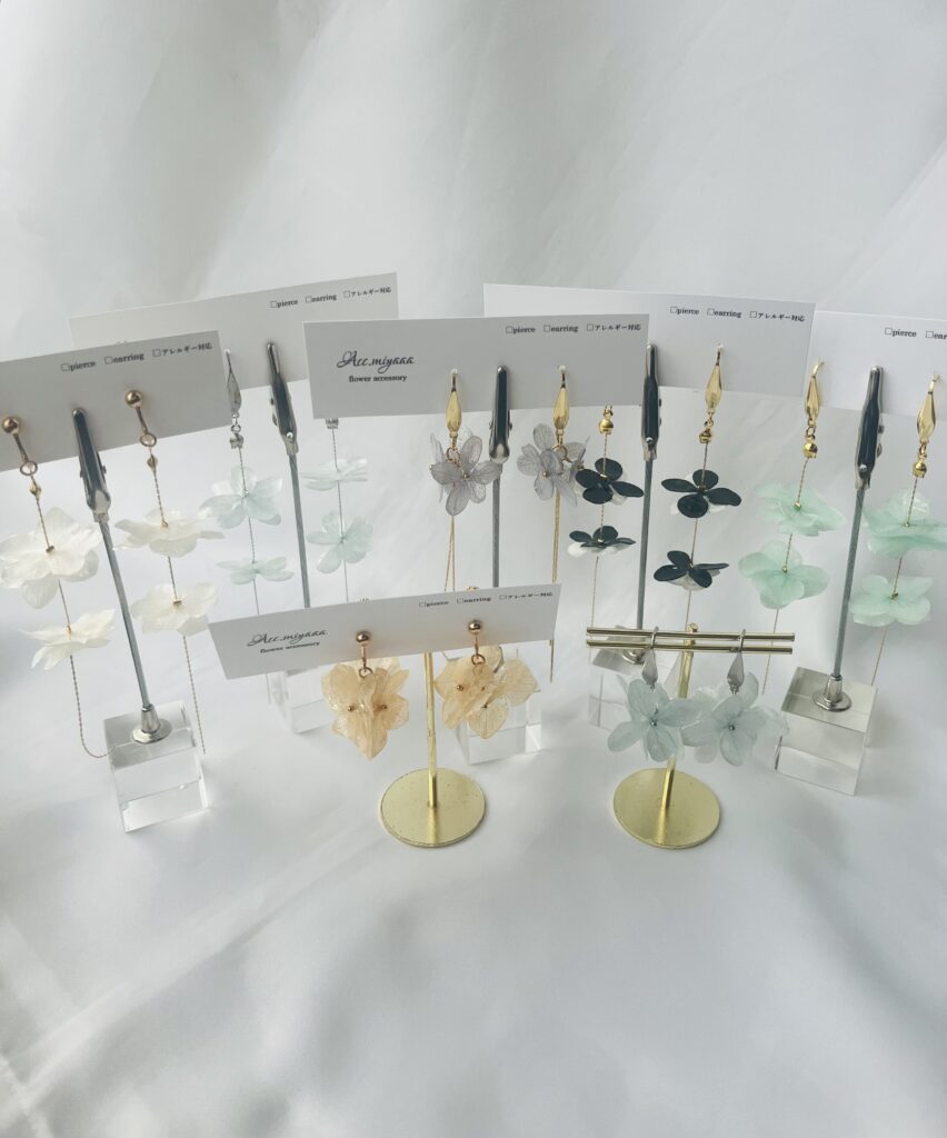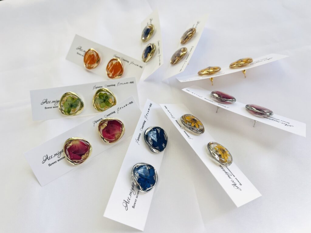 全て本物のお花を使用したフラワーアクセサリーと、色も型も1から作るアゲートアクセサリーはどれも1点もののアクセサリーです。