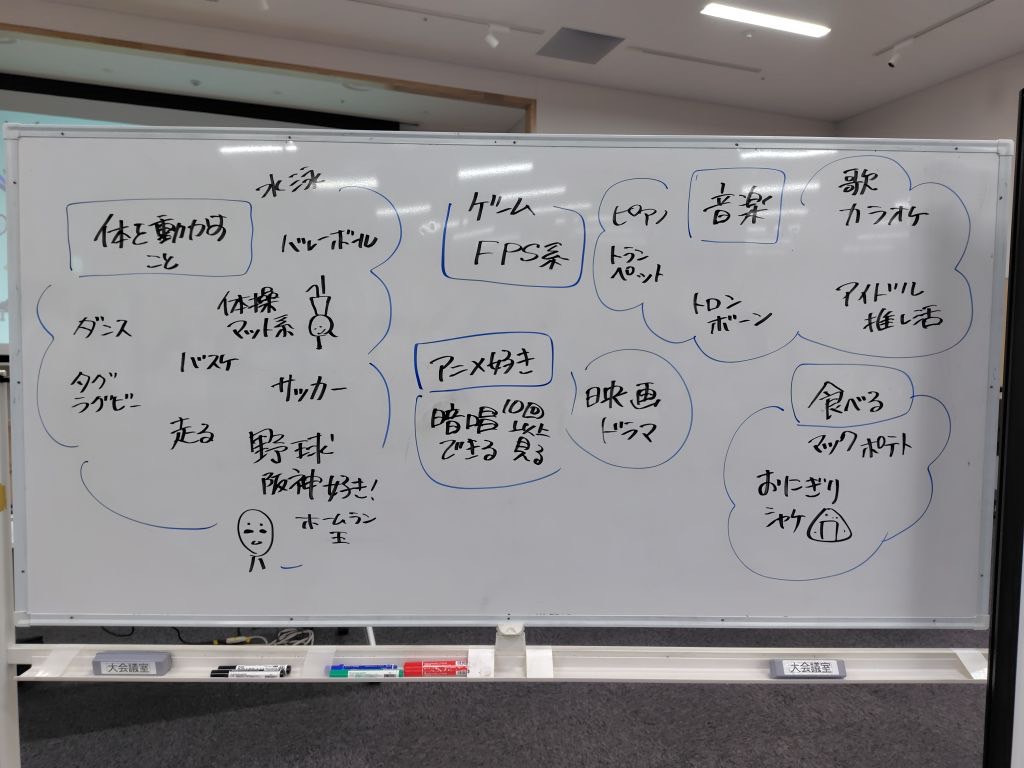 今年度の意見交換のテーマ【①得意なこと②地域の困りごと③得意なことをどのように地域に活かせるか】の3つについて、グラフィックレコーディングで意見をまとめながら話し合いました。